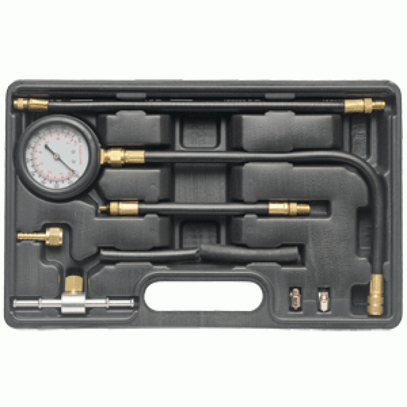 Набор предназначен для контроля давления в системах впрыска топлива инжекторных двигателей. Укомплектован переходниками и резиновыми шлангами с резьбовыми наконечниками, позволяющими производить тестирование топливных систем различных марок современных автомобилей. Максимальное измеряемое давление - 7 кгс/см2. Манометр защищён резиновым чехлом.