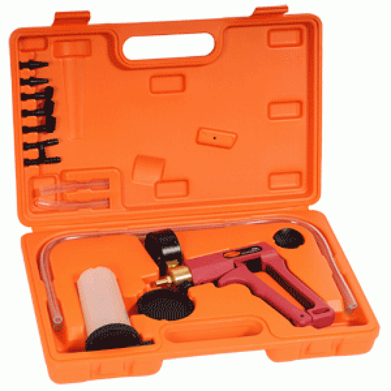 Применяется для диагностики вакуумных систем большиства автомобилей отечественного и иностранного производства. Основная часть набора - вакуумный насос, который позволяет создавать разряжение до 760 мм.рт.ст. Набор укомплектован переходниками для подключения к различным вакуумным системам. Благодаря наличию в составе набора специальной ёмкости, набор может быть использован для удаления воздуха из тормозной системы. Манометр ручного насоса имеет заводскую калибровку и отображает значение разряжения как в миллиметрах ртутного столба, так и в дюймах.