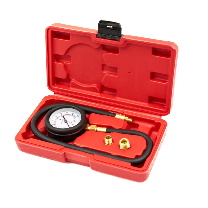 ST105 Тестер давления масла с адаптерами - это отличное решение при выборе диагностического оборудования в небольшой автосервис или в домашнее хозяйство. Данный прибор позволит быстро и с максимальной точностью определить уровень компрессии масла в любом типе автомобилей. Большой манометр оснащен двумя шкалами измерения давления с четкой и понятной градуировкой - psi и бар.