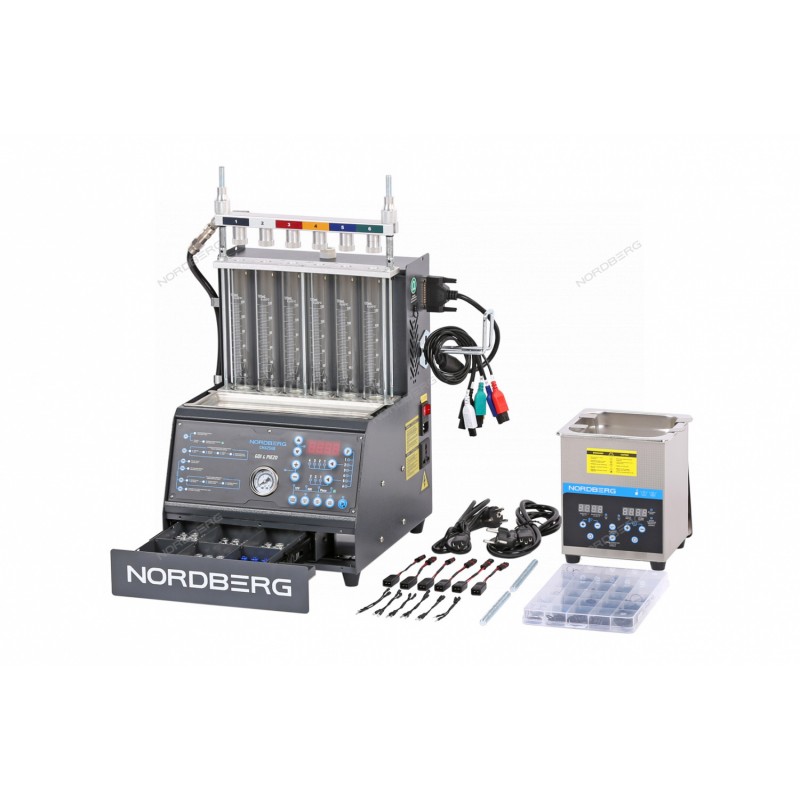 Установка для тестирования и очистки форсунок NORDBERG CMA25AB – специальное диагностическое оборудование для обслуживания и ремонта топливных систем автомобилей в автосервисах и СТО.ФУНКЦИОНАЛПредназначена для диагностики и очистки форсунок GDI и пьезофорсунок, установленных в бензиновых двигателях.Принцип работы установки заключается в моделировании различных условий работы двигателя посредством подачи под давлением на обслуживаемые форсунки тестовой жидкости и импульсного сигнала, а также нагрева очистительной жидкости и применения ультразвуковых волн, удаляющих нагар и отложения.Функции:1. Тест на сопротивление форсунки2. Ультразвуковая очистка3. Тест на однородность / распыляемость4. Проверка герметичности5. Тест производительности6. Автоматический тестПРЕИМУЩЕСТВАТипы обслуживаемых форсунок: пьезо, GDI, EFI, MPI, SPFI, TBI, CFI, FSI, TSI, TFSI и пр.Отдельностоящая увеличенная ультразвуковая ванна с регулируемым по температуре подогревом и таймером обеспечивает полную очистку форсунок.6 форсунок может быть протестировано или очищено одновременно, что значительно повышает эффективность работы, а кронштейн для УЗ-ванны позволяет одновременно устанавливать до 12 форсунок.Возможность очистки форсунок на автомобиле без их снятия.Металлический поднос в комплектации, препятствующий разрушению ЛКП оборудования, на которое попадает стекающая при вынимании форсунок жидкость.Фильтр тонкой очистки.Функция тестирования топливных форсунок с низким сопротивлением.Режим автоматического тестирования, возможный благодаря встроенному микрокомпьютеру, содержит пять разных вариантов тестирования, позволяющих проверить форсунки по многим параметрам, которые приводятся последовательно.Высококачественные электромагнитные клапаны слива жидкости из колб, в отличие от использования механических.Провода подключения форсунок увеличенной длины с цветовой маркировкой.Подсветка мерных колб с возможностью изменения интенсивности освещения до полного выключения.Удобная система крепления топливной рампы.Микрокомпьютер обеспечивает контроль давления топлива и позволяет регулировать его диапазон.Русскоязычное меню цифрового дисплея на панели управления.Выдвижной ящик с большим набором адаптеров и комплектов импульсных кабелей.Комплект уплотнительных колец для оперативной замены на месте и достижения наилучшей герметизации во время тестирования.Фильтр 126х60 мм для удаления крупных частиц посторонних включений из охлаждающей жидкости (заказывается дополнительно)УДОБСТВО ИСПОЛЬЗОВАНИЯИнтуитивно понятный интерфейс и простой принцип работы.КОМПЛЕКТАЦИЯ№