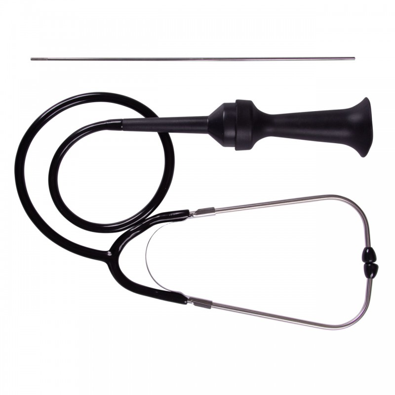 Предназначен для определения посторонних шумов, вибраций и их источники в двигателе, трансмиссии, выпускной системе, системе охлаждения, топливной системе. Комплектация – Стетоскоп механический – Слуховая трубка – Слуховой щуп Материалы