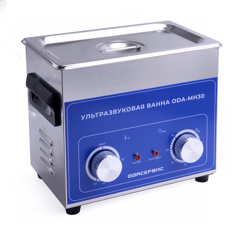 ODA-MH30 – ультразвуковая ванна объемом 3 литра с аналоговым управлением. Оснащена механическим таймером до 30 минут и подогревом до 80°С. Ванна и корзина сделаны из нержавеющей стали SUS304. Имеет частоту ультразвука 40кГц. Подходит для очистки маслянистых, смолистых, жировых и карбоновых отложений. Также возможно использование для стерилизации различных предметов.