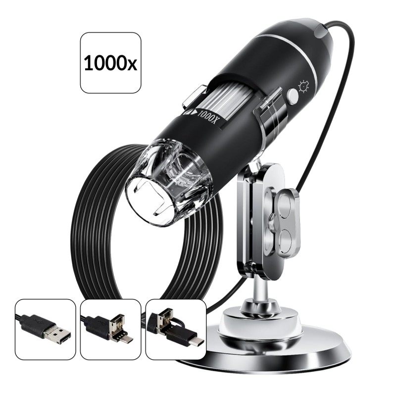 Микроскоп цифровой USB/Micro-USB/Type-C, 2Мп, 1000X, 1920x1080, 1.5м iCartool IC-V317