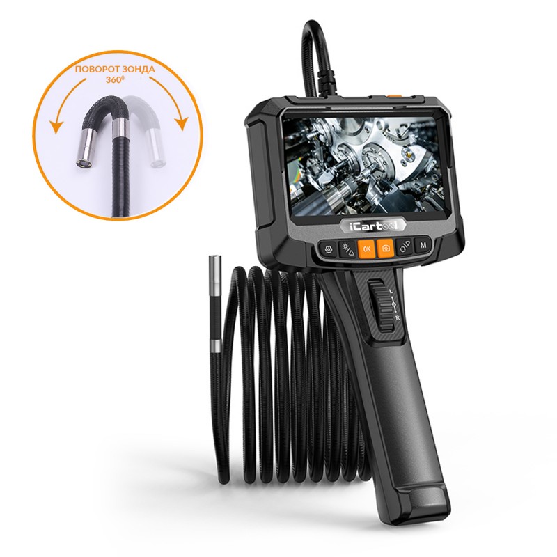Видеоэндоскоп управляемый, 5", 2Мп, 1920x1080, 1м, 6.2мм, 360° iCartool IC-VC8052W