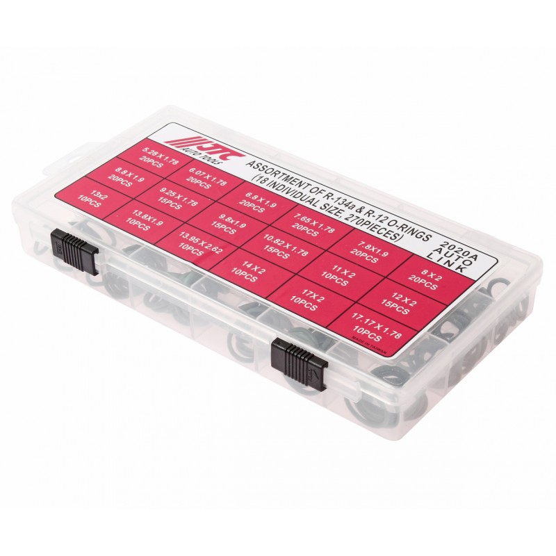 Набор колец уплотнительных для систем кондиционирования с R-12/R-134 270шт с хладагентами бокс JTC JTC-2020A