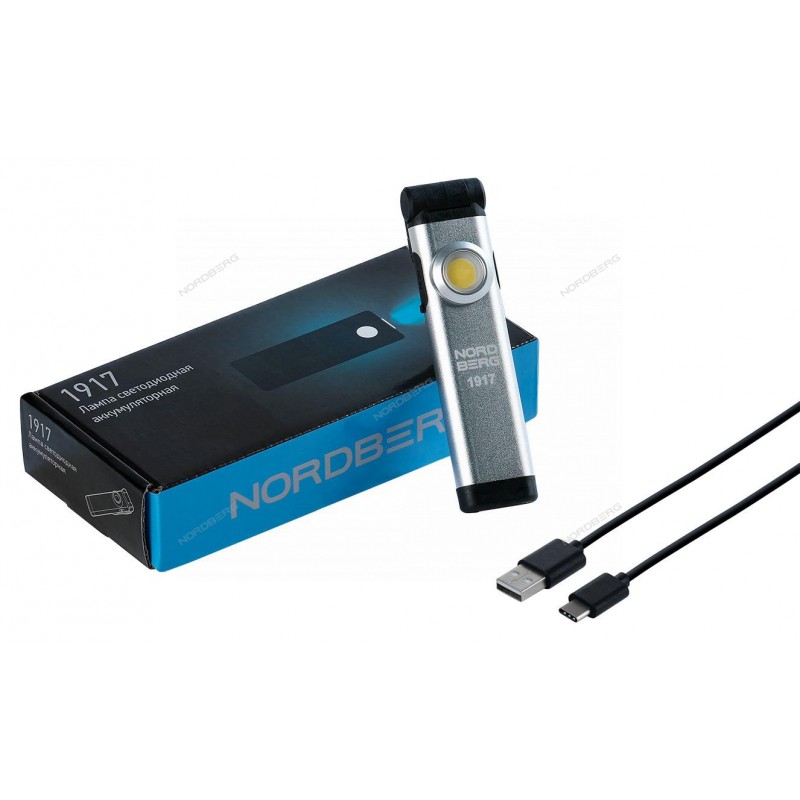 NORDBERG ФОНАРЬ 1917 светодиодный, аккумуляторный, 3,7В (без зарядного уст-ва)Магниты для крепления на металлических поверхностяхСверхтонкий корпус2 режима работы фонаряКлипса для крепления на одеждеДолгое время работы: до 3-х часов Световой поток основного освещения: 200 Лм Li-on аккумулятор: 3,7 В / 1100 mAч Зарядка через кабель Type-C с разъемом USBВ комплекте поставки кабель для зарядки USB -> USB Type-C