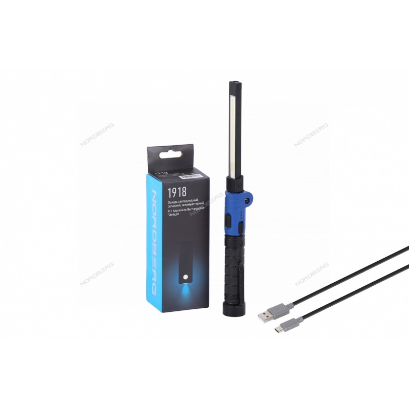 Складной светодиодный аккумуляторный фонарь NORDBERG 1918 – осветительный прибор для профессионального использования в автосервисах и СТО.ФУНКЦИОНАЛИспользуется для подсветки деталей механизмов, узлов агрегатов и других устройств и мест, где требуется дополнительное освещение при проведении диагностических или ремонтных работ.ПРЕИМУЩЕСТВАПрочный корпус из алюминия и пластика.Пять режимов освещения в зависимости от трех типов светодиодов COB, SMD, 6500К: – светодиод № 1 150 лм, 800 лм– светодиод № 2 120 лм, 400 лм– светодиод № 3 120 лм.Время работы от 2,5 до 9 часов в зависимости от выбранного режима.Можно легко переносить в кармане благодаря складному механизму и компактным размерам.Пыленепроницаемость, водостойкость и ударостойкость по IP54, IK07.Зарядка встроенного аккумулятора осуществляется через разъем Type-C в фонаре.Зажим для переноски на поясе.УДОБСТВО ИСПОЛЬЗОВАНИЯМагнит в основании позволяет закрепить устройство к металлическим поверхностям и освободить руки при проведении диагностических работ.Складная конструкция.КОМПЛЕКТАЦИЯфонарь со встроенным аккумуляторомкабель USB/Type-Cпаспорт-инструкцияСкладной светодиодный фонарь NORDBERG 1918 – удобный инструмент при проведении ремонтных работ в автосервисах и СТО, обеспечивающий необходимую яркость освещаемой поверхности.