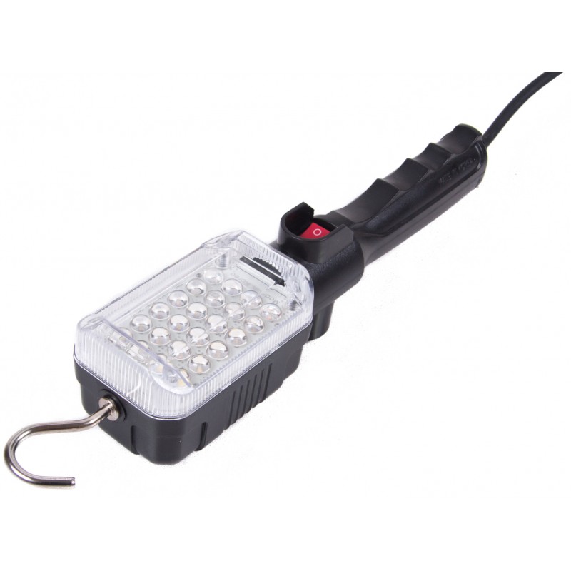 Параметры ЗначенияТип аккумулятора Питание от сети 220ВПылевлагозащита IP45Яркость (Lumen) 1 900Срок службы (часов) 100 000Цветовая температура 5700 KДлина провода (м) 6Мощность (Вт) 7Вес 2.3Лампа переносная проводная, 24 светодиодаОписаниеПри высокой мощности освещения (1900 lumen) данный светильник может похвастаться низким потреблением энергии. Кроме тогo, конструкция оснащена сильным магнитом и металлическим поворотным крюком для того, чтобы светильник было проще закрепить именно в том положении, которое требуется. Техническое совершенство и уникальный набор возможностей делают данное устройство единственным предложением такого рода на рынке. В своей ценовой категории устройств, сравнимых с данным светильников по функционалу, нет. Внимание!Очищайте прозрачную крышку от загрязнений для более интенсивного освещения.