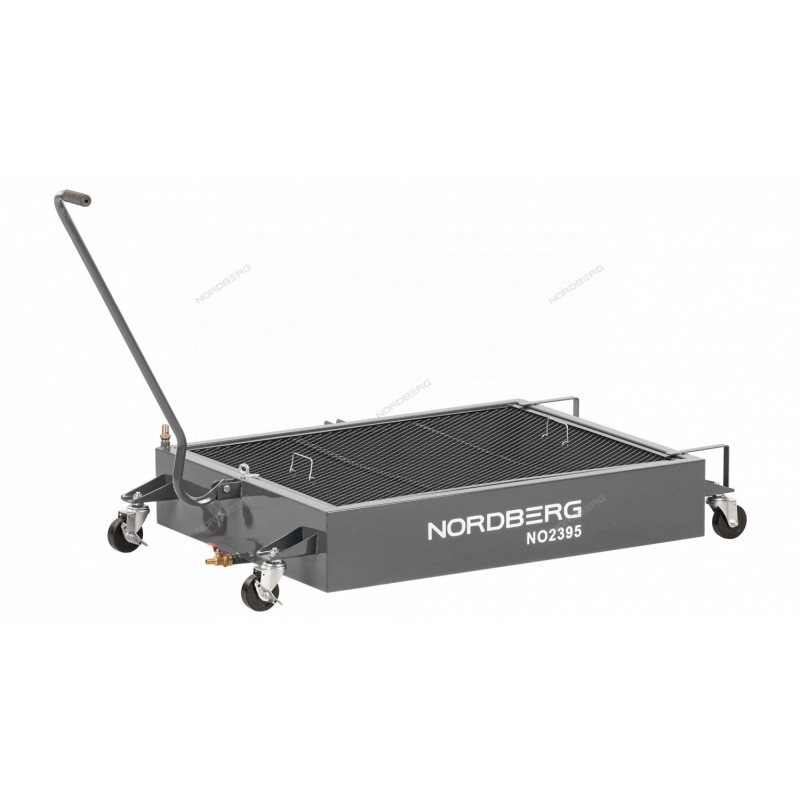 Емкость для сбора масла на колесах NORDBERG NO2395(G) – специализированное оборудование для использования в автосервисах, грузовых парках, автомастерских и других предприятиях, занимающихся обслуживанием и ремонтом автотранспорта.ФУНКЦИОНАЛПредназначена для эффективного сбора самотёком из сливных отверстий узлов и агрегатов отработанного масла и охлаждающей жидкости в больших объемах из внедорожников, фургонов, спецтехники, тракторов, грузовиков и т. д. Слив жидкости из ёмкости осуществляется самотеком через спускной кран или переходник при помощи насоса (не входит в комплект).ПРЕИМУЩЕСТВАОбъем емкости 95 литров, подходящий для нескольких последовательных замен масла или большого объема охлаждающей жидкости.Оснащена сеткой для контроля содержания в масле посторонних предметов (обломки, осколки и прочее от разрушения внутренних деталей агрегата), а также для временного размещения масляных фильтров с целью слива из них отработанного масла и последующей более чистой их утилизации.Удобное расположение подвижной рукоятки и ручек для удобства перемещения и позиционирования емкости при нахождение оператора под транспортным средством.Наличие поворотных колес со стопорами.УДОБСТВО ИСПОЛЬЗОВАНИЯОптимальный объем емкости позволяет производить замену масла в нескольких агрегатах за один прием, при этом высота емкости позволяет обслуживать агрегаты с низким расположением сливных отверстий (мосты, редукторы и т.д.). Наличие подвижной рукоятки и маневренных колес со стопорами дает возможность перекатывать емкость к труднодоступным точкам слива, а дополнительные ручки позиционировать изделие, находясь под узлом непосредственно перед открытием сливного отверстия.Подкатная емкость для сбора масла NORDBERG NO2395(G) позволит быстро и качественно провести работы по техническому обслуживанию автомобиля.