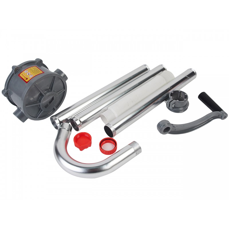 В комплект входит 2 переходник и всасывающая хромированная трубка, состоящая из 3 элементов, которая подходит для большинства емкостей объемом 15, 30 и 55 галлонов.