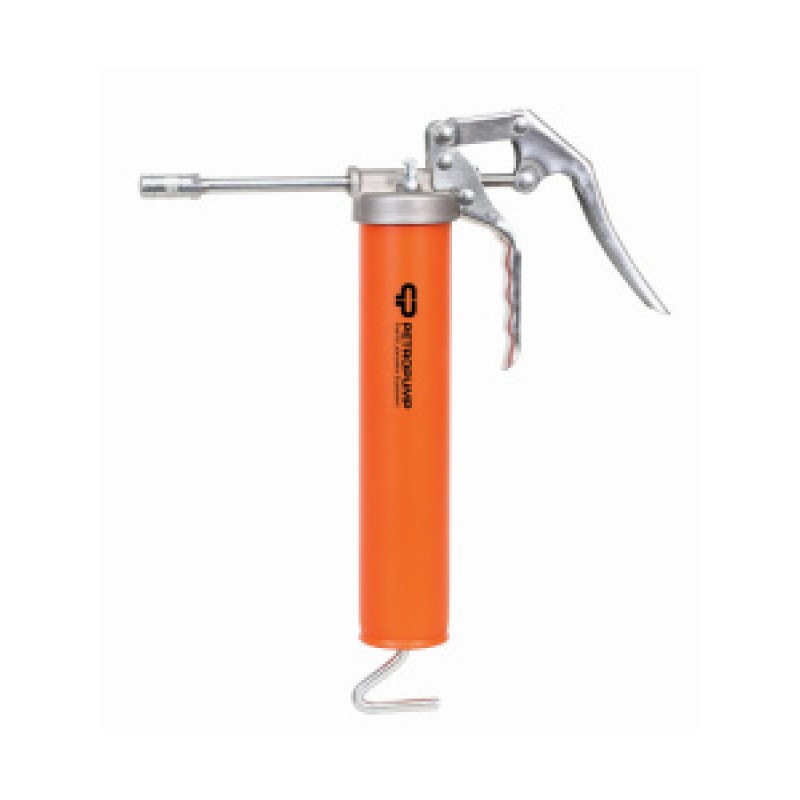 Шприц пистолетного типа для подачи консистентной смазки объемом 500 см3. Предназначен для дозированной подачи смазки в рабочие узлы оборудования. Производительность шприца 0,5 г/ход. Резьба 1/8" BSPT. Рабочее давление 345 бар. Укомплектован прямой стальной трубкой 100 мм с 4-х лепестковым наконечником