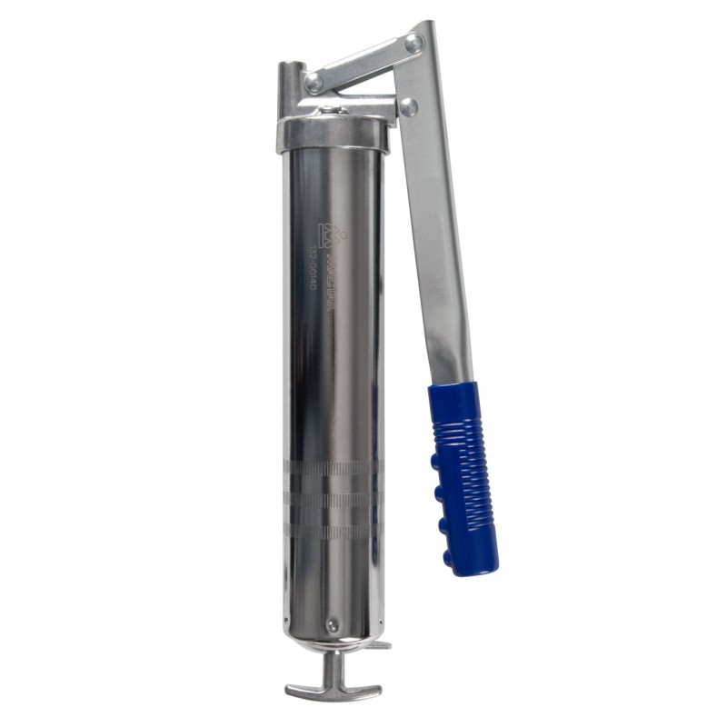давление – 400 бар (5800 psi) Выпускной воздушный клапан – есть, 2 шт. Материалы – алюминий (плунжерная головка), сталь (корпус, рукоять), ПВХ (защита рукояти и тубуса), армированный нейлон (гибкий шланг) Упаковка – картонный короб