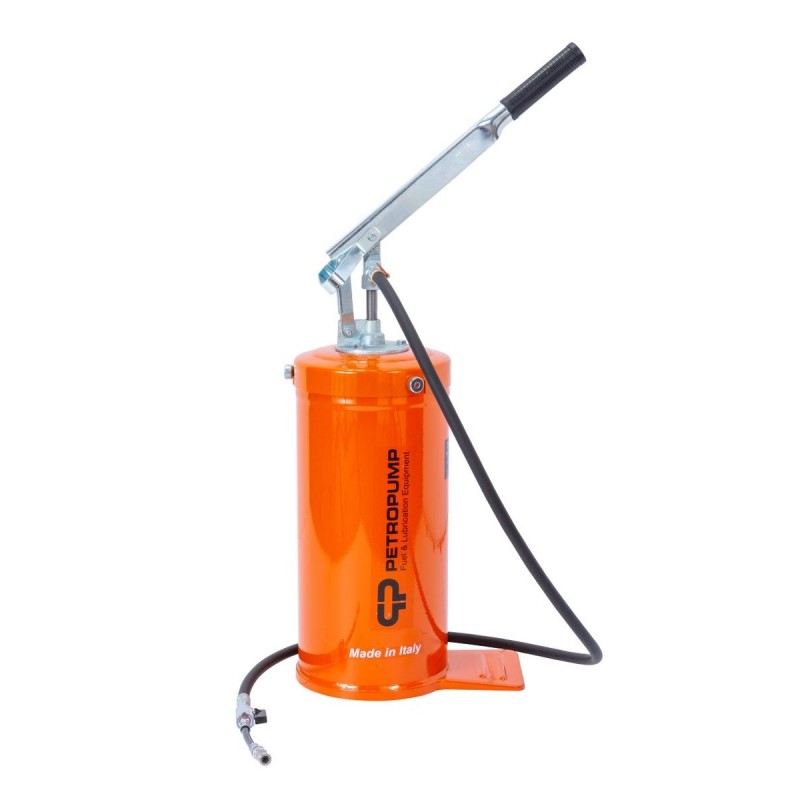 Мобильный солидолонагнетатель с ручным рычажным насосом и емкостью 12 кг. Предназначен для регулярного легкого и быстрого обсдуживания инструментов, машин и механизмов, используемых в сельском хозяйстве, автотранспортной и иных сферах. Полностью разработан, произведен и сертифицирован в Италии.