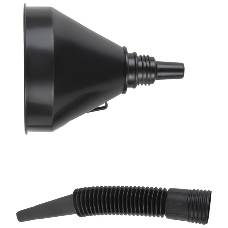 Воронка пластмассовая с гибким наконечником для горюче-смазочных материалов OPT-405800 подходит для удобного, быстрого и аккуратного заливания горюче-смазочных материалов.