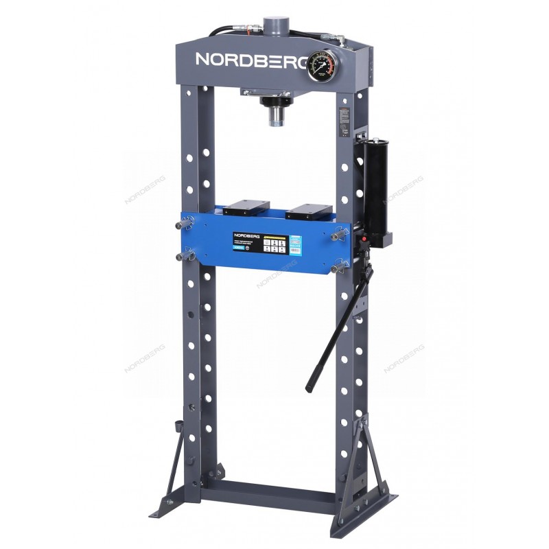 Гидравлический прессNORDBERG N3631G— используется на станциях технического обслуживания и ремонтных предприятиях для выполнения автослесарных и промышленных работ.ФУНКЦИОНАЛПредназначен для выпрессовки, запрессовки, правки деталей, узлов и механизмов с применением гидравлического привода. ПРЕИМУЩЕСТВАВысокая мощность: максимальное усилие прессования 30 тонн;Регулируемый рабочий диапазон — от 0 до 940 мм, подходит для деталей разного размера;Регулируемый стол — ширина 510 мм, глубина 150 мм, позволяет удобно размещать крупногабаритные элементы;Безопасность работы — встроенный предохранительный клапан защищает от перегрузок;Удобное управление — гидравлический привод с горизонтальным смещением для точного позиционирования;Контроль давления — виброустойчивый манометр с демпфирующей жидкостью на уровне глаз оператора.УДОБСТВО ИСПОЛЬЗОВАНИЯРегулируемый по высоте рабочий стол для обслуживания различных деталей;Горизонтальное смещение позволяет точно позиционировать заготовку, что упрощает процесс обработки и экономит время;Компактные размеры — подходит для установки в мастерских и цехах;Установочные блоки в комплекте для фиксации заготовок;Возвратный подъем штока гидроцилиндра после операции;Надежная сварная конструкция рамы для долговечности.КОМПЛЕКТАЦИЯГидроцилиндр;Гидравлический насос;Рабочий стол с установочными блоками;Шланг гидросистемы;Манометр;Опора и стойка.NORDBERG N3631G— мощное и надежное решение для выполнения автослесарных и промышленных работ.