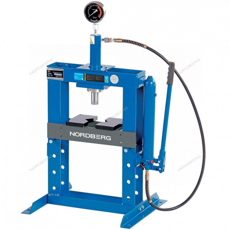 Гидравлический пресс с ручным приводом NORDBERG N3610 – оборудование для выполнения различных ремонтных работ в автосервисах и СТО.ФУНКЦИОНАЛИспользуется при следующих ремонтно-монтажных работах: выпрессовки подшипников и втулок, правки валов, осей, профилей, для прессования заготовокПРЕИМУЩЕСТВАМаксимальное усилие 10 тоннПорошковое покрытие корпуса препятствует образованию коррозииРегулируемый рабочий столГидравлический насос с ручным приводом.УДОБСТВО ИСПОЛЬЗОВАНИЯДве пластины трапеции для надежного упораМанометр для контроля рабочего давления расположен на уровне глаз.КОМПЛЕКТАЦИЯГидравлический пресс NORDBERG N3610Пластины трапецииПаспорт-инструкцияПресс гидравлический NORDBERG N3610 – незаменимое оборудование в автосервисах, гаражах, позволяющее эффективно и быстро выполнять различные ремонтные работы.