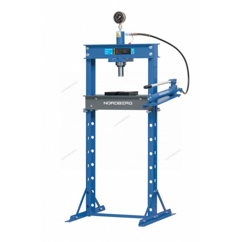 Гидравлический пресс с ручным приводом NORDBERG N3620L – оборудование для выполнения различных ремонтных работ в автосервисах и СТО.ФУНКЦИОНАЛИспользуется при следующих ремонтно-монтажных работах: выпрессовки подшипников и втулок, правки валов, осей, профилей, для прессования заготовок.ПРЕИМУЩЕСТВАМаксимальное усилие 20 тоннПорошковое покрытие корпуса препятствует образованию коррозииРегулируемый рабочий столГидравлический насос с ручным приводом.Возможность смещения гидравлического цилиндраУДОБСТВО ИСПОЛЬЗОВАНИЯДве пластины трапеции для надежного упораМанометр для контроля рабочего давления расположен на уровне глаз.КОМПЛЕКТАЦИЯГидравлический пресс NORDBERG N3620LПластины трапецииПаспорт-инструкцияГидравлический пресс NORDBERG N3620L – незаменимое оборудование в автосервисах, гаражах, позволяющее эффективно и быстро выполнять различные ремонтные работы.