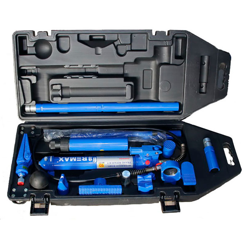 Гидроцилиндр на 10 тонн с ручным насосом и набором насадок и упоров.