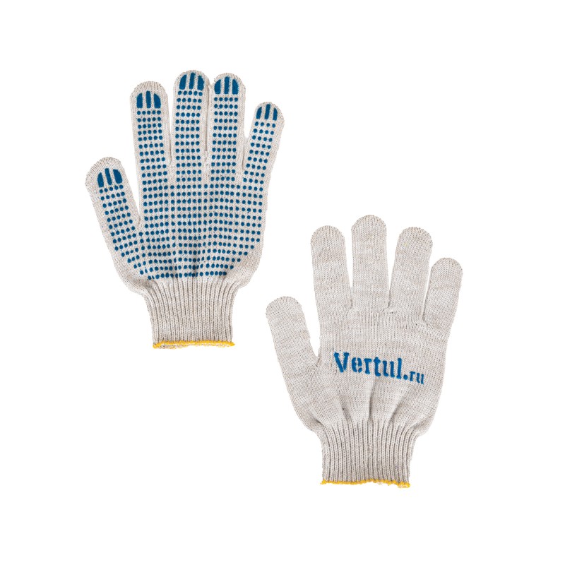 Перчатки хлопчато бумажные с ПВХ 10 класс вязки 5 нитей с логотипом Vertul точка.