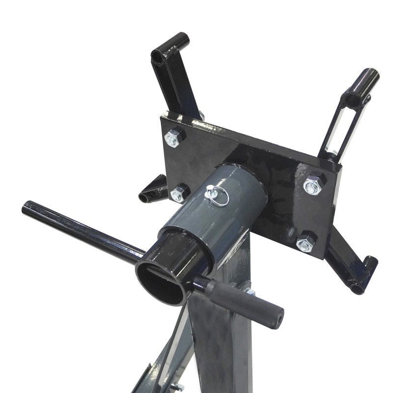 Кантователь двигателя используется в автомастерских. Поворотный механизм позволяет легко изменять положение двигателя, обеспечивая удобство при ремонте. Сбалансированное опорное основание делает конструкцию устойчивой на рабочей поверхности.