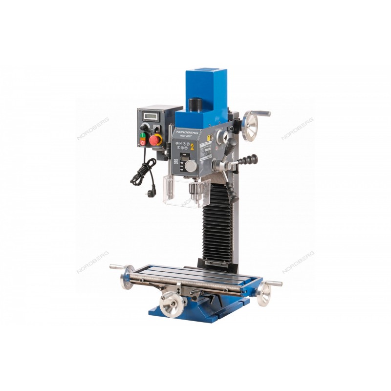 Сверлильно-фрезерный станок NORDBERG NDM2037 – универсальный настольный станок, предназначенный для фрезерования, сверления, нарезания резьбы и других видов механической обработки металлов, полимерных материалов и т. д.ФУНКЦИОНАЛФрезерование, включающее использование различных типов фрез для формирования поверхностей (концевое, торцевое), создание пазов, плоскостей и других операций.Сверление отверстий с помощью различных сверлильных инструментов.Нарезание резьбы до М10. Также станок может применяться для развертывания, создания фасок, маркировки ударным методом, конического зенкования, подрезки торца втулки.ПРЕИМУЩЕСТВАЭлектродвигатель мощностью 0,75 кВт и высокая производительность станка для выполнения неотложных задач.Расстояние шпиндель-стол составляет 37 см.Плавная регулировка скорости вращения шпинделя.Функция правого и левого вращения шпинделя.Возможность наклона фрезерной головки вправо/влево.Цифровой дисплей показывает частоту вращения и глубину сверления.Стол оснащен Т-образными пазами, обеспечивающими точное позиционирование заготовки.Точное перемещение и плавный ход пиноли шпинделя.Изготовлен в соответствии со стандартами СЕ.УДОБСТВО ИСПОЛЬЗОВАНИЯНадежный электродвигатель способен выдерживать высокие нагрузки и поддерживать постоянное количество оборотов длительное время.Контроль за оборотами шпинделя при помощи дисплея.Позиционирования заготовки и рабочего органа относительно друг друга в трех плоскостях, а также обработка детали под наклоном.Размеры стола позволяют крепить разнообразные заготовки для нужд автомастерских.Сверлильно-фрезерный станок NORDBERG NDM2037 на рабочем столе или верстаке в вашей мастерской гарантирует высокую производительность и позволяет решать множество задач по обработке заготовок без обращения в сторонние организации.Подробную информацию об эксплуатации и характеристиках фрезерно-сверлильного станка NORDBERG NDM2037 вы можете получить у наших инженеров и технических специалистов, отправив запрос по почте auto@master-instrument.ruПо вопросам дилерского сотрудничества пишите на почту info@nordberg.ru