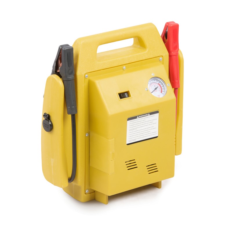 Пусковое устройство 2в1 со встроенным электрическим насосом для подкачки колес, встроенным аккумулятором для быстрого запуска двигателя. На корпусе из ударопрочного пластика находятся амперметр, индикаторы и кнопки с понятной символикой, упрощающие процесс эксплуатации. Для удобства использования в местах с недостаточным освещением на корпусе устройства предусмотрен фонарь.