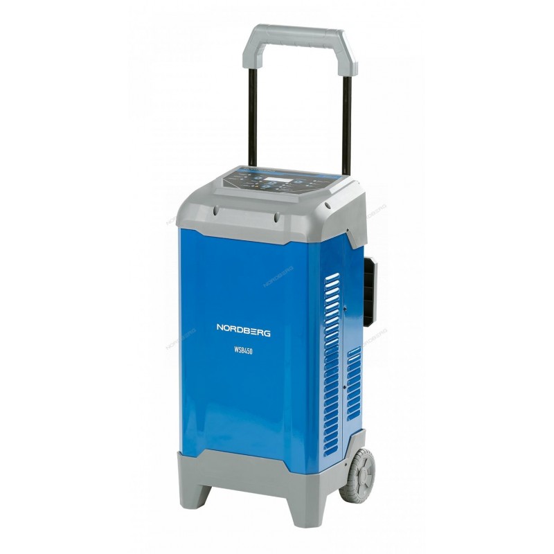Пуско-зарядное интеллектуальное устройство NORDBERG WSB450 предназначено для обслуживания большого спектра автомобильных аккумуляторов различных транспортных средств в автосервисах и СТО.ФУНКЦИОНАЛОсуществляет зарядку АКБ и запуск двигателей различных автомобилей, грузовиков, мотоциклов, лодок и т.д., имеющих емкость аккумулятора до 650 А٠ч.ПРЕИМУЩЕСТВАОбслуживает различные типы аккумуляторных батарей: STD, CA, MF, EFB, GEL, AGM.Мощность 2000 Вт в режиме заряда и 8000 Вт в режиме стартера.Максимальный ток в режиме запуска 250 А.Инвертор нового поколения, позволяющий снизить потери тока в процессе зарядки.Возможность выбора режима зарядки для определенного типа батареи.Устройство имеет различные функции защиты: автоматическое отключение после окончания зарядки, от перегрева, от низкого входного напряжения, от короткого замыкания, от подключения в обратной полярности.Конструкция устройства позволяет свести к минимуму вероятность образования искры в результате эксплуатации.УДОБСТВО ИСПОЛЬЗОВАНИЯПозволяет заряжать несколько 12 В или 24 В батарей одновременноПри различных неполадках в работе устройство сигнализирует о них для своевременного устраненияТранспортировочные колеса и широкая выдвижная ручка для удобного перемещенияЭТАПЫ ПРОЦЕССА ЗАРЯДКИДиагностика: на этом этапе устройство проверяет, подключена ли батарея к зарядному устройству.Десульфатация: проходит импульсная зарядка для удаления сульфата.Плавный старт: проверяется способность батареи воспринимать заряд, устройство производит зарядку с постепенным увеличением зарядного тока.Основной заряд: устройство производит зарядку максимальным током примерно до 80% емкости батареиДиагностика: осуществляется проверка батареи на предмет удержания заряда.Постоянная зарядка: проходит зарядка постоянно увеличивающимся напряжениемВосстановление: напряжение увеличивается с целью появления контролируемого газовыделения в батарее.Поглощение: батарея заряжается постоянным уменьшающимся током и максимальным напряжением.Диагностика: пзу проверяет, может ли батарея удерживать заряд.Техническое обслуживание: зарядное устройство контролирует напряжение батареи и периодически подаёт на неё небольшой заряд тока, тем самым поддерживая полный заряд батареи.КОМПЛЕКТАЦИЯПуско-зарядное устройство NORDBERG WSB450Кабель с клеммами для подключения к АКБКабель питанияРучка для транспортировкиДержатель клеммПаспорт-инструкцияАвтомобильное ПЗУ NORDBERG WSB450 позволяет эффективно произвести зарядку АКБ и запуск транспортных средств.