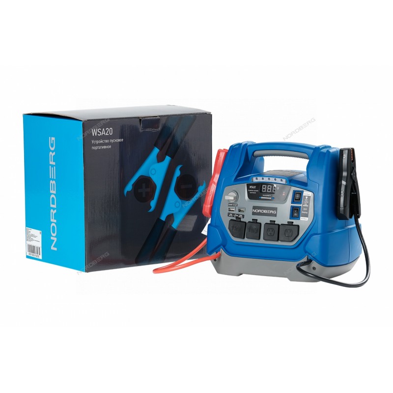 Пусковое портативное устройство NORDBERG WSA20 – необходимое оборудование для запуска двигателя легковых автомобилей и мототехники с разрядившейся АКБ, а также зарядки аккумуляторных батарей.ФУНКЦИОНАЛУстройство предназначено для быстрого запуска двигателей транспортных средств в условиях, когда аккумулятор транспортного средства разряжен. Также используется для зарядки телефонов, планшетов и видеокамер и других устройств.ПРЕИМУЩЕСТВАСила пускового тока 600 А.Встроенный аккумулятор емкостью 18 А·ч.Большая емкость аккумулятора позволяет запускать двигатели: бензиновые до 7 л, дизельные до 4 л.Встроенный светодиодный фонарь значительно облегчает подключение в темноте.Встроенный компрессор для подкачки шин, делает устройство еще более функциональным и универсальным.Клеммы удобно фиксируются на корпусе устройства.УДОБСТВО ИСПОЛЬЗОВАНИЯИнформативный дисплей для контроля процесса зарядки.Небольшой вес и габаритыЭргономичная рукоятка для комфортной переноскиНеобходимые кабели и переходники в комплектеКОМПЛЕКТАЦИЯУстройство WSА20Кабель питанияКомплект проводов для подключения к АКБКомплект переходниковКомплект предохранителейПаспорт-инструкцияМногофункциональное пусковое устройство NORDBERG WSA20 позволит быстро и легко и запустить различные двигатели или зарядить мобильные устройства.