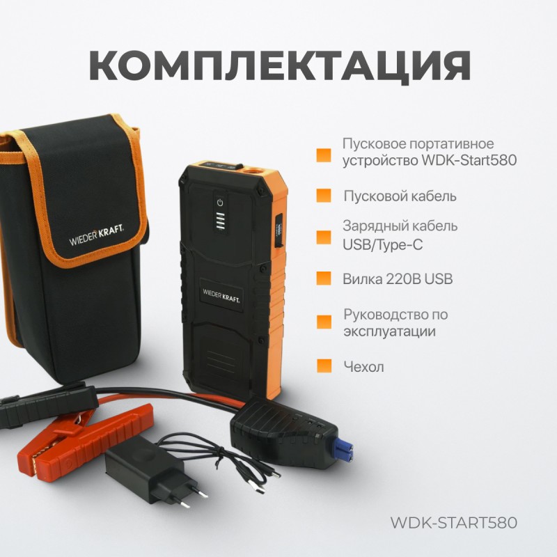 Портативное пусковое устройство (ПЗУ) для автомобиля WiederKraft WDK-Start580 - одно из самых мощных и компактных пусковых устройств.