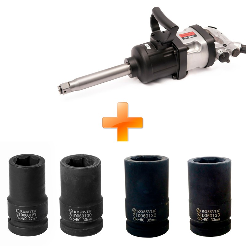 Комплект: Гайковерт пневматический 1" с головками 27, 30, 32, 33мм RT-5880+SID060127-SID060133