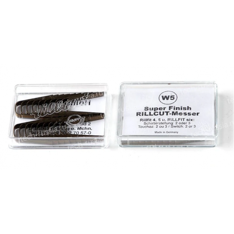 Лезвия-ножи RILLCUT для нарезки протектора изготовлены из специальных сплавов стали. Многолетний опыт в процессе производства гарантирует высокое качество. Использование оригинальных лезвий-ножей RILLCUT гарантирует правильную температуру и совершенное скольжение ножа.