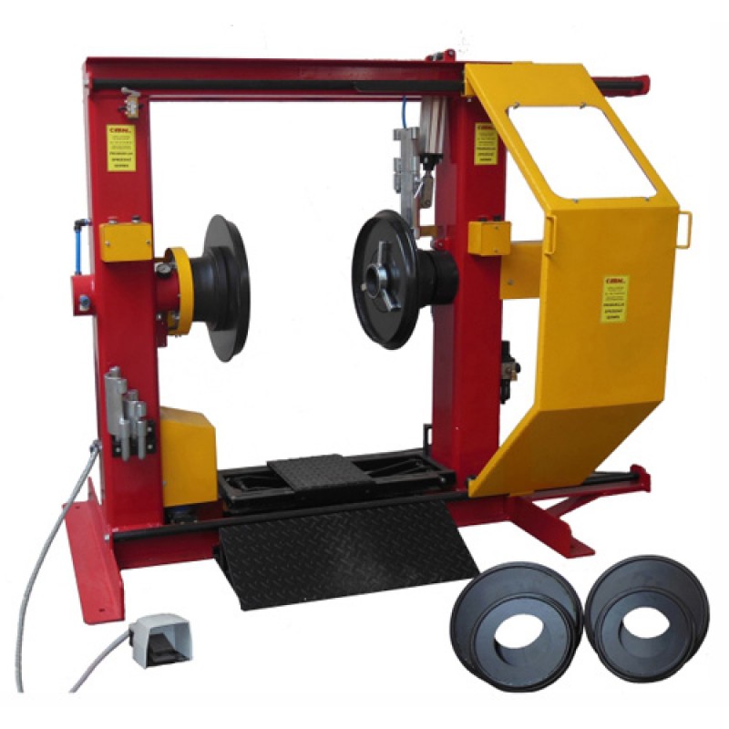 Модель имеет три пары пластин для испытания грузовых шин 17,5", 19,5" и 22,5" и пневматический подъемник для шин.