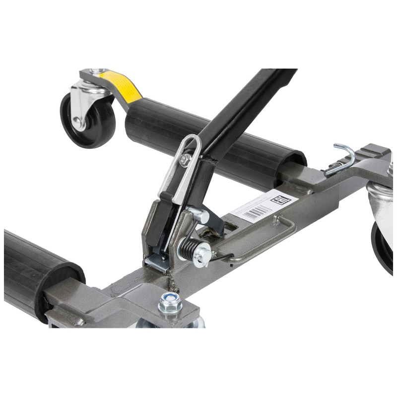 Механическая колесная тележка для авто WIEDERKRAFT WDK-80325M - удобное приспособление, применяется для эвакуации и перемещения по территории автосервиса или стоянки автомобилей, с заблокированными или отсутствующими колесами, заблокированными АКПП, сломанными шаровыми опорами.