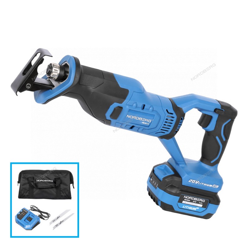 Сабельная пила аккумуляторная NORDBERG NE611K – универсальный режущий инструмент для выполнения ремонтных и строительных работ в автомастерских, СТО, производственных предприятиях и для бытового использования.ФУНКЦИОНАЛПредназначена для выполнения различных режущих работ по дереву, металлу и прочим материалам.Служит для распиливания заготовок, резки металлических труб, конструктивных элементов, а также для выполнения точного пиления и удаления материала.ПРЕИМУЩЕСТВАЛитиево-ионный аккумулятор емкостью 4 А·ч и напряжением 20 В, совместимый с аккумуляторным инструментом NORDBERG*Быстрая и удобная смена лезвий без применения дополнительных инструментовАвтономность и маневренность благодаря аккумулятору, а также отсутствие необходимости контролировать кабель во время резки материаловПеременная скорость хода лезвия позволяет выбрать оптимальную скорость в соответствии с материалом, который необходимо резать, обеспечить точность и контроль выполнения работДлина хода лезвия дает возможность выполнять более глубокие резы в различных материалах, что делает инструмент универсальным и удобным для использованияУДОБСТВО ИСПОЛЬЗОВАНИЯМягкая рукоять с нескользящим покрытием и компактные размерыЗарядное устройство обеспечивает быструю подзарядку аккумулятораКОМПЛЕКТАЦИЯаккумуляторная пилааккумулятор 4 А·чзарядное устройствопильное полотно по деревупильное полотно по металлусумка для хранения и переноскипаспорт-инструкцияСОВМЕСТИМЫЕ АККУМУЛЯТОРЫNE9004NE9006Прямая сабельная аккумуляторная пила NORDBERG NE611K – портативный и мобильный инструмент, идеальный выбор как для профессиональных слесарей, так и для любителей, занимающихся ремонтом в домашних условиях или за городом.* кроме моделей NORDBERG NE808, NE812