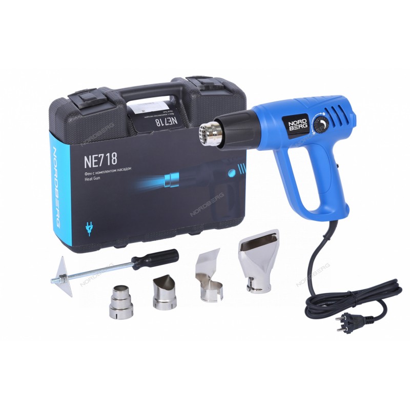 Фен, 4 насадки, в кейсе, 50-600 °С, 2000 Вт NORDBERG NE718