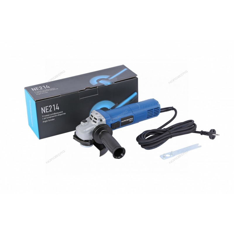 УШМ с регулировкой оборотов NORDBERG NE214 – универсальный инструмент для выполнения большого спектра работ в профессиональном и домашнем использовании.ФУНКЦИОНАЛПредназначена для шлифования и резки металлов, а также минеральных строительных материалов, например кирпич,натуральный и искусственный камень, бетон, плитки и т.п. при помощи шлифовальных принадлежностей, подобранных специально для данного вида материала.ПРЕИМУЩЕСТВА6 скоростей работы в зависимости от типа материала и выполняемой задачиМаксимальная скорость вращения 11000 об/минДлина кабеля 4 метраБыстрозажимной защитный кожухКомпактные размеры и небольшой весУДОБСТВО ИСПОЛЬЗОВАНИЯСпециальная антивибрационная ручка обеспечивает удобный захватДлина провода позволяет использовать инструмент в труднодоступных местахКОМПЛЕКТАЦИЯугловая шлифмашинадополнительная рукоятказащитный кожухключ для зажимной гайкипаспорт-инструкцияУгловая шлифмашина NORDBERG NE214 - инструмент, который может применяться как для профессионального, так и для домашнего использования.