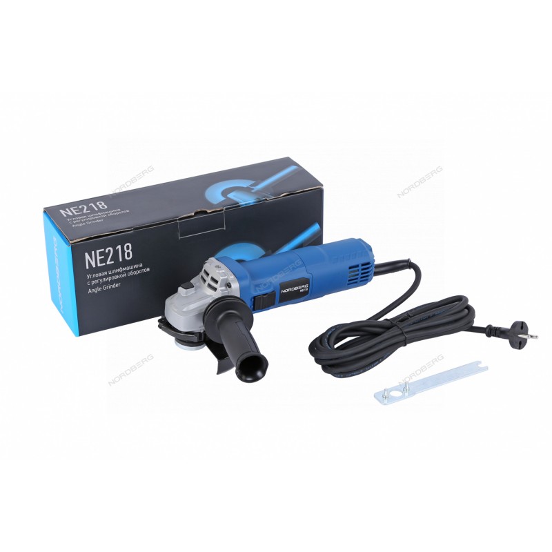 УШМ с регулировкой оборотов NORDBERG NE218 – универсальный инструмент для выполнения большого спектра работ в профессиональном и домашнем использовании.ФУНКЦИОНАЛПредназначена для шлифования и резки металлов, а также минеральных строительных материалов, например кирпич,натуральный и искусственный камень, бетон, плитки и т.п. при помощи шлифовальных принадлежностей, подобранных специально для данного вида материала.ПРЕИМУЩЕСТВА6 скоростей работы в зависимости от типа материала и выполняемой задачиМаксимальная скорость вращения 11000 об/минДлина кабеля 4 метраБыстрозажимной защитный кожухКомпактные размеры и небольшой весУДОБСТВО ИСПОЛЬЗОВАНИЯСпециальная антивибрационная ручка обеспечивает удобный захватДлина провода позволяет использовать инструмент в труднодоступных местахКОМПЛЕКТАЦИЯугловая шлифмашинадополнительная рукоятказащитный кожухключ для зажимной гайкипаспорт-инструкцияУгловая шлифмашина NORDBERG NE218 - инструмент, который может применяться как для профессионального, так и для домашнего использования.