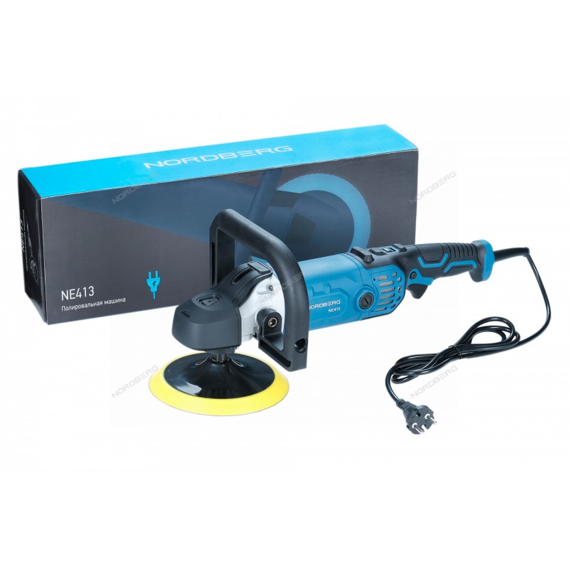 Полировальная сетевая машинка NORDBERG NE413 предназначена для профессионального использования при полировании и шлифовании различных поверхностей – лакокрасочных покрытий, дерева, фанеры, металла и т.д.Полировальная машина NE413 укомплектована двигателем мощностью 1400 Вт;Машинка оснащена плавным пуском. NE413 можно запустить на низкой частоте вращения в 600 об/мин и адаптировать ее к выполняемой работе, повышая число оборотов шпинделя до 3500 об/мин;Кнопка-фиксатор на корпусе полировальной машины NE413 позволяет фиксировать курок в положении старт для беспрерывной работы. Это обеспечивает удобство при проведении долгих работ – оператору нет необходимости все время держать палец на курке;Кнопка блокировки шпинделя обуславливает быструю и безопасную замену рабочей оснастки;Удобная вспомогательная D-образная рукоятка повышает контроль над инструментом. Положение дополнительной рукояти можно регулировать в зависимости от потребностей оператора;Полировальные насадки крепятся на липучке, что способствует их быстрой замене;В корпусе машины NE413 предусмотрен быстрый доступ к щеткам. Оператор может самостоятельно их заменить без разбора корпуса оборудования;Корпус полировальной машины имеет эргономичную форму. Выполнен из прочного пластика. Задняя удлиненная рукоять имеет прорезиненную поверхность. Полировальная машина NE413 надежно лежит в руках, обеспечивая оператору комфортную работу двумя руками.Мощность – 1300 ВтЧастота вращения – 600-3500 об/минДиаметр диска – 180 мм (7")Провод – 2 мКомплектация:Полировальная машинаДиск полировальный (основа) VelcroВспомогательная рукоятьВинт рукояти - 2 шт.ШестигранникИнструкция