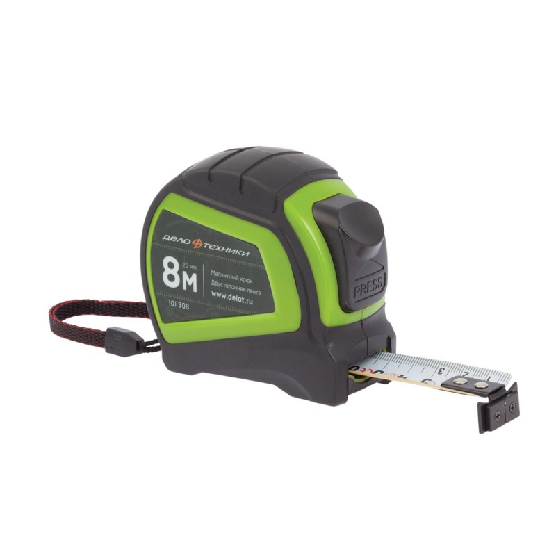 Рулетка в обрезиненном, эргономичном корпусе с автоматическим фиксатором ленты.