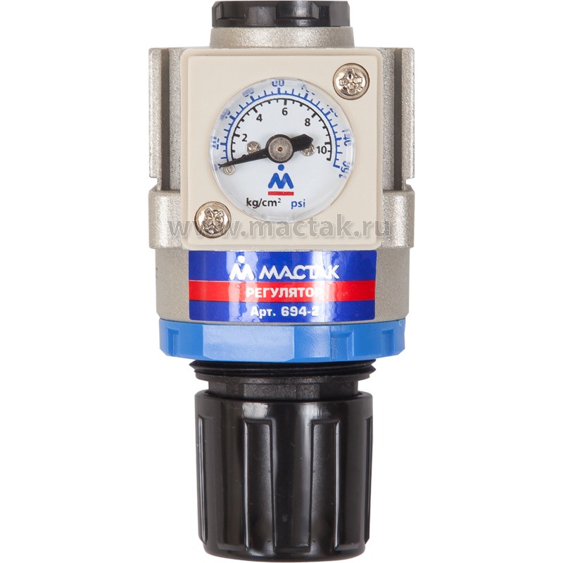 Манометр-регулятор МАСТАК 694-2 с размером резьбового соединения 1/4 дюйма применяется в пневматических системах для эффективного контроля выходного давления тем самым увеличивая срок службы пневмоинструмента.