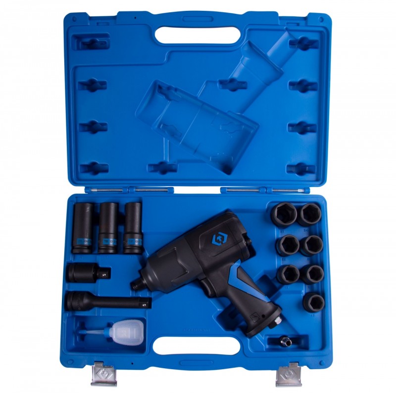 Гайковерт пневматический ударный 1/2, 1356 Нм, с комплектом головок, 15 предметов KING TONY 44803AMP