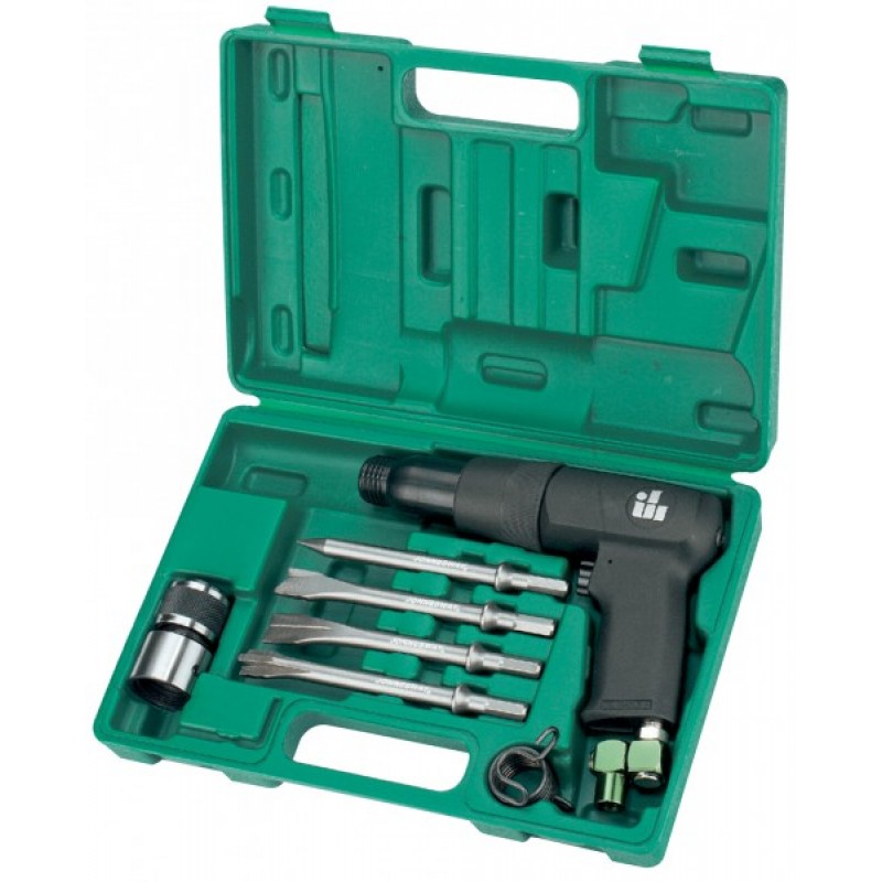 JONNESWAY Набор инструмента: Молоток пневматический (низкая вибрация) 2100 уд/мин, 128 л/мин и комплект насадок, 8 предметов JAH-303HK
