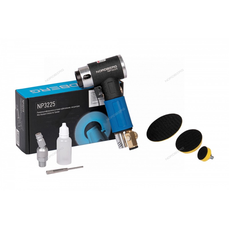 Пневматическая шлифовальная машинка для шлифования, полировки или удаления старых лакокрасочных покрытий NORDBERG NP3225 – специализированное оборудование для автосервисов, станций шиномонтажа и автотранспортных предприятий.ФУНКЦИОНАЛПредназначена для шлифования, полировки или удаления старых лакокрасочных покрытий.ПРЕИМУЩЕСТВАТри сменных диска диаметром позволяют эффективно и безопасно обработать поверхность.Металлический корпус, защищенный эластичной накладкой.Шарнирное пневмосоединение в комплекте.УДОБСТВО ИСПОЛЬЗОВАНИЯПневмошлифмашинка значительно сокращает временные издержки на очистку поверхностей. Она компактна, умещается в одной руке и за счет шарнирного пневмосоединения минимизирует неудобство от натяжения шланга подачи сжатого воздуха, а эластичная накладка на корпусе улучшает контакт с ним, чем достигается удобство и производительность при обработке поверхностей.КОМПЛЕКТАЦИЯпневмошлифмашинка NORDBERG NP3225шлифовальные диски 3 шт. 25 мм, 50 мм, 75 ммФиксатор для смены диска - 1 шт.быстросъемный переходник - 1 шт.маслёнка (без масла)паспорт-инструкцияПневматическая шлифовальная машинка NORDBERG NP3225 позволит бережно и эффективно очистить различные автомобильные детали.