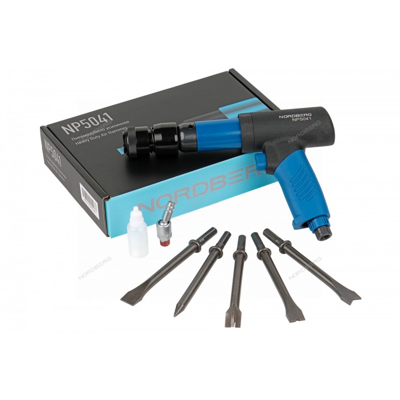 Пневматическое усиленное зубило NORDBERG NP5041 – пневмоинструмент для проведения слесарных работ в автосервисных, автотранспортных и производственных предприятиях.ФУНКЦИОНАЛУдарно-режущие работы, связанные с проведением кузовного, слесарного и других видов ремонта транспортных средств и оборудования: срезание болтов, заклепок, пробивание и формирование отверстий в материалах, демонтаж шаровых опор и прочих соединенных элементов шасси, выравнивание поверхностей и т.д.ПРЕИМУЩЕСТВАБыстросъемный патрон позволяет быстро сменить насадку и надежно ее зафиксироватьПротивоударный прочный корпусПневматический двигатель рассчитан на долговременную работу без перерывовНабор насадок в комплектеШарнирный присоединительный штуцер в комплекте компенсирует натяжение от пневмошлангаПрорезиненная рукоятка для удобного захвата инструмента и снижения уровня вибрацииУдобная клавиша пуска упрощает управление устройствомУДОБСТВО ИСПОЛЬЗОВАНИЯЭргономичная конструкция, небольшой вес и легкое управление с помощью широкой клавиши пуска обеспечивают длительную работу без остановки.Усиленное пневмозубило NORDBERG NP5041 – оптимальный выбор пневматического инструмента для оснащения автосервисов, мастерских, промышленных цехов.