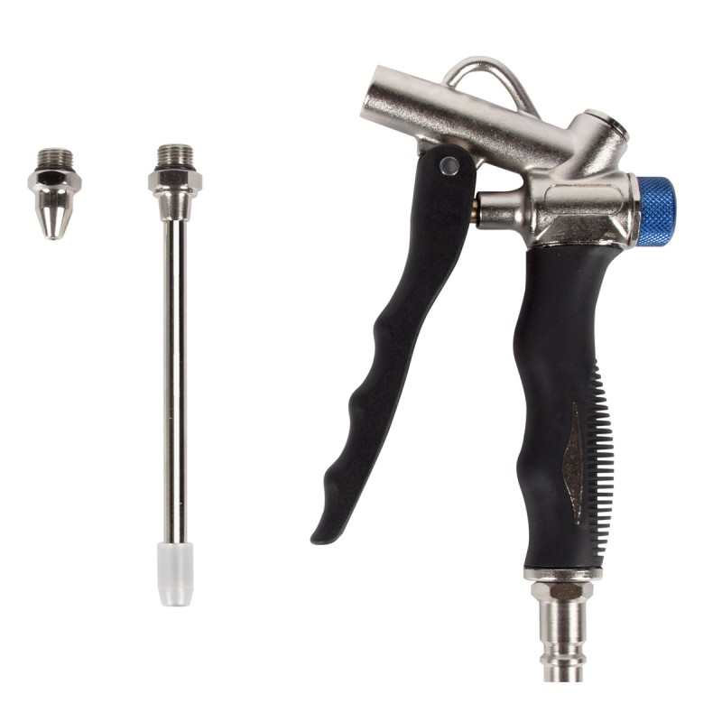 Обдувочный пистолет WiederKraft WDK-65167 служит для продувки отверстий от загрязнений. Его корпус изготовлен из металла, благодаря чему прослужит долгое время. Обрезиненная рукоятка обеспечивает надежный захват и не скользит в руке. Предусмотрена возможность регулировки скорости воздушного потока.