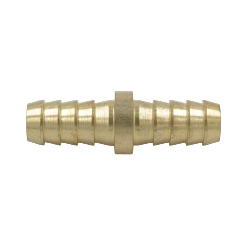 Латунный соединительный штуцер типа ёлочка-ёлочка для шлангов диаметром 10 мм с двумя обжимными оцинкованными стальными кольцами. Обеспечивает прочное и герметичное соединение.