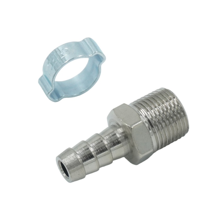 Штуцер пневматический ёлочка с обжимным кольцом, внешняя резьба 3/8, 10 мм OPT-73010HM