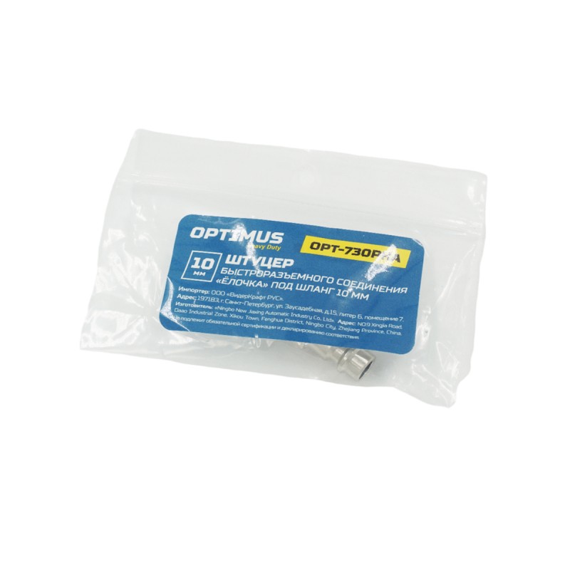 Штуцер быстроразъемного соединения ёлочка под шланг 10 мм OPT-730PHA