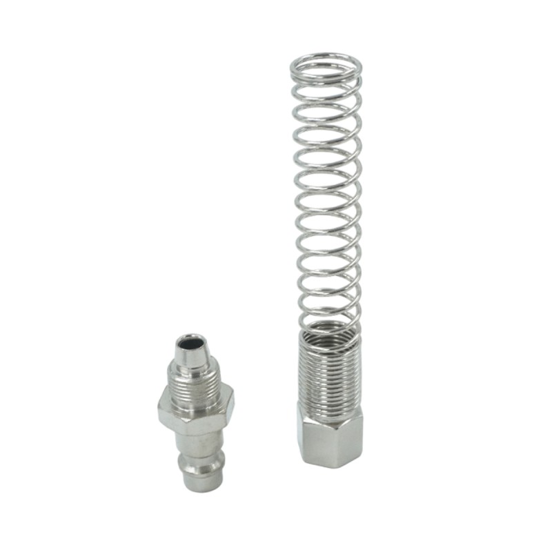 Штуцер быстроразъемного соединения с пружинкой и резьбой 3/8. Предназначен для быстрого и удобного подключения в пневматических системах.
