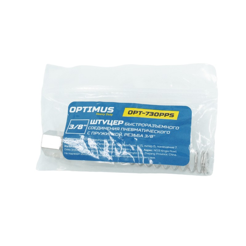 Штуцер быстроразъемного соединения пневматического с пружинкой, резьба 3/8 OPT-730PPS